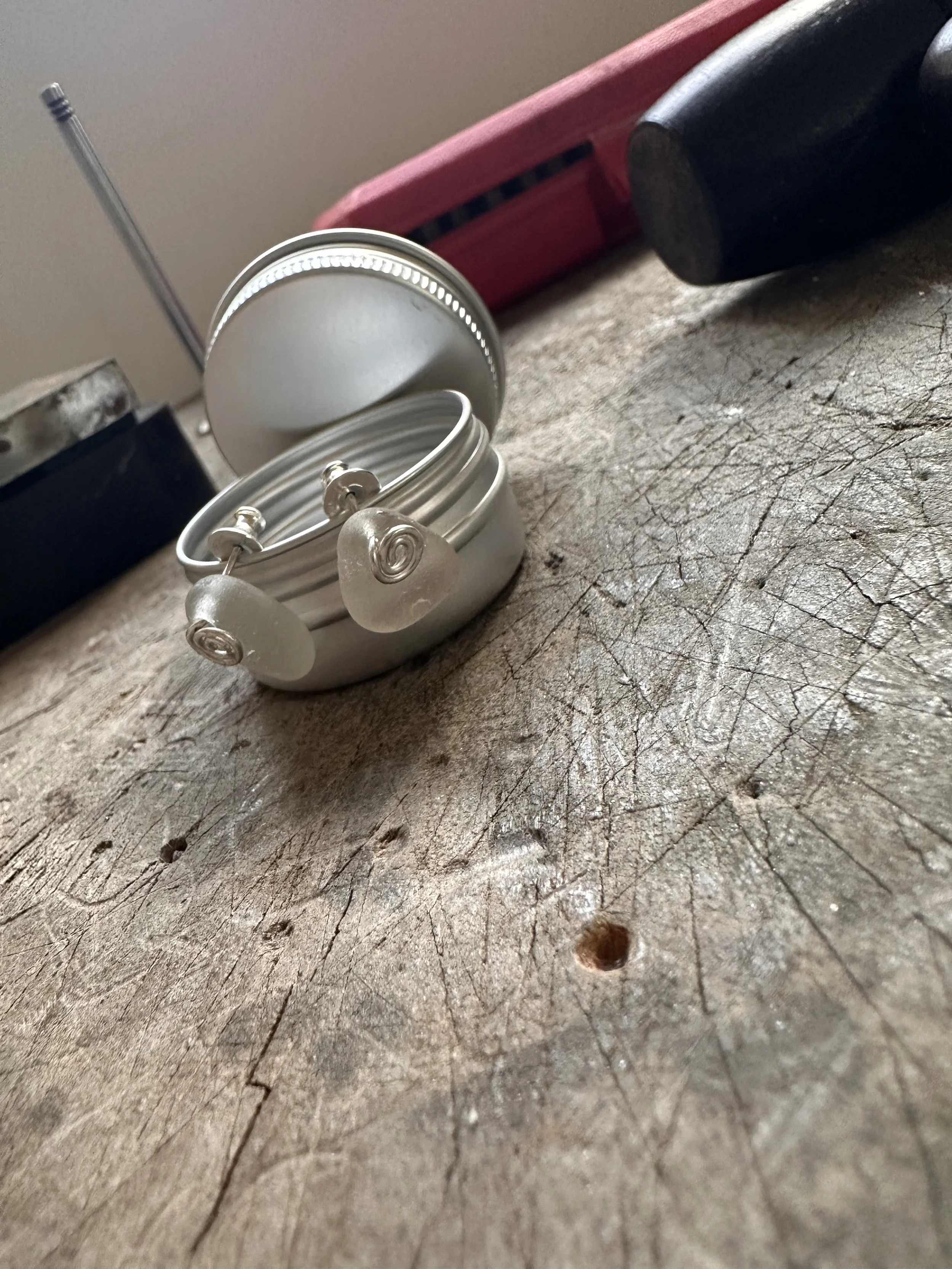 Earrings Categories: All Earrings Bracelet Pendants All Rings All / Whirl pool earrings £20.00 Custom itemDo you have your own sea glass? Let’s work together and create a piece. Contact me